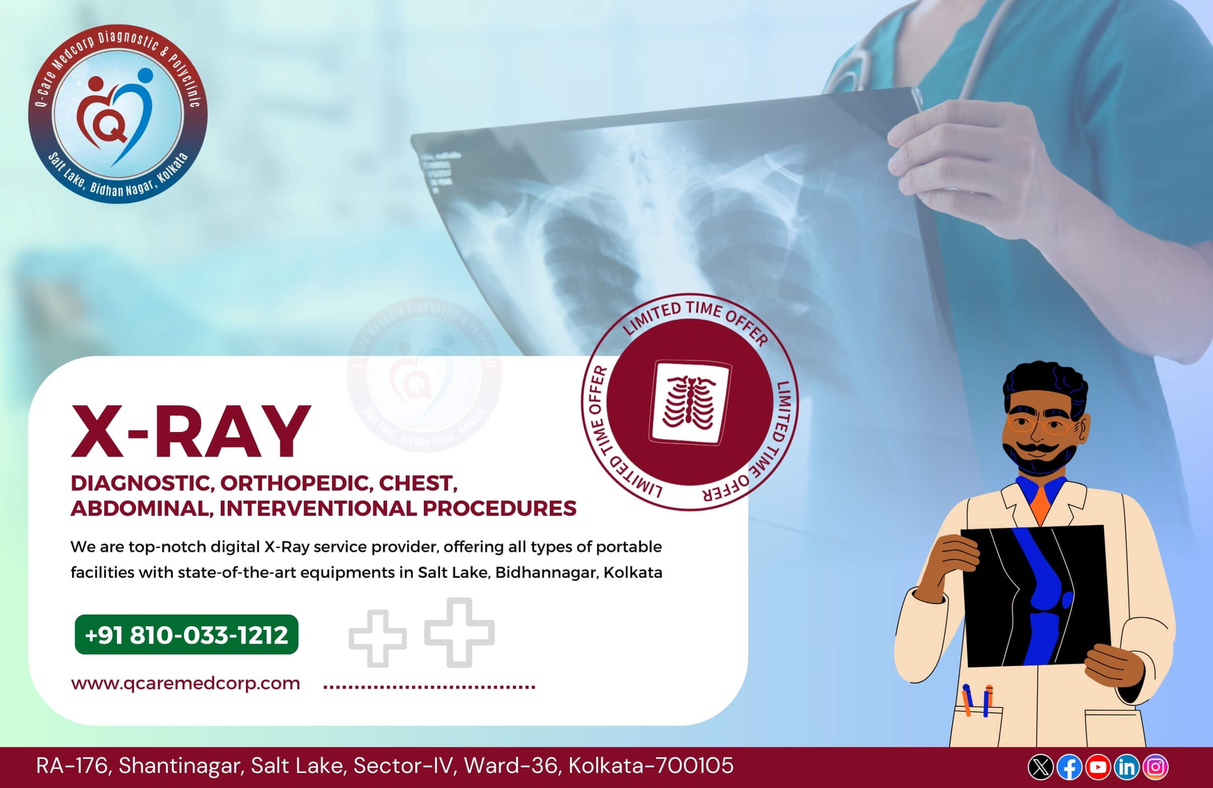 At Q-Care Medcorp Diagnostic & Polyclinic we offer advanced digital X-ray services designed to provide accurate and reliable diagnostic imaging at an affordable cost. X-rays are a powerful tool in modern medicine, helping physicians diagnose a wide range of medical conditions by capturing detailed images of internal structures using electromagnetic radiation. These images, called radiographs, help reveal issues that are not visible to the naked eye and assist in forming effective treatment plans.